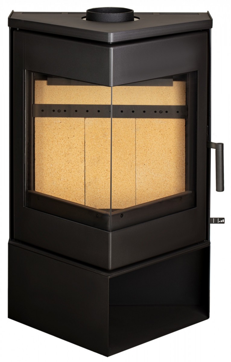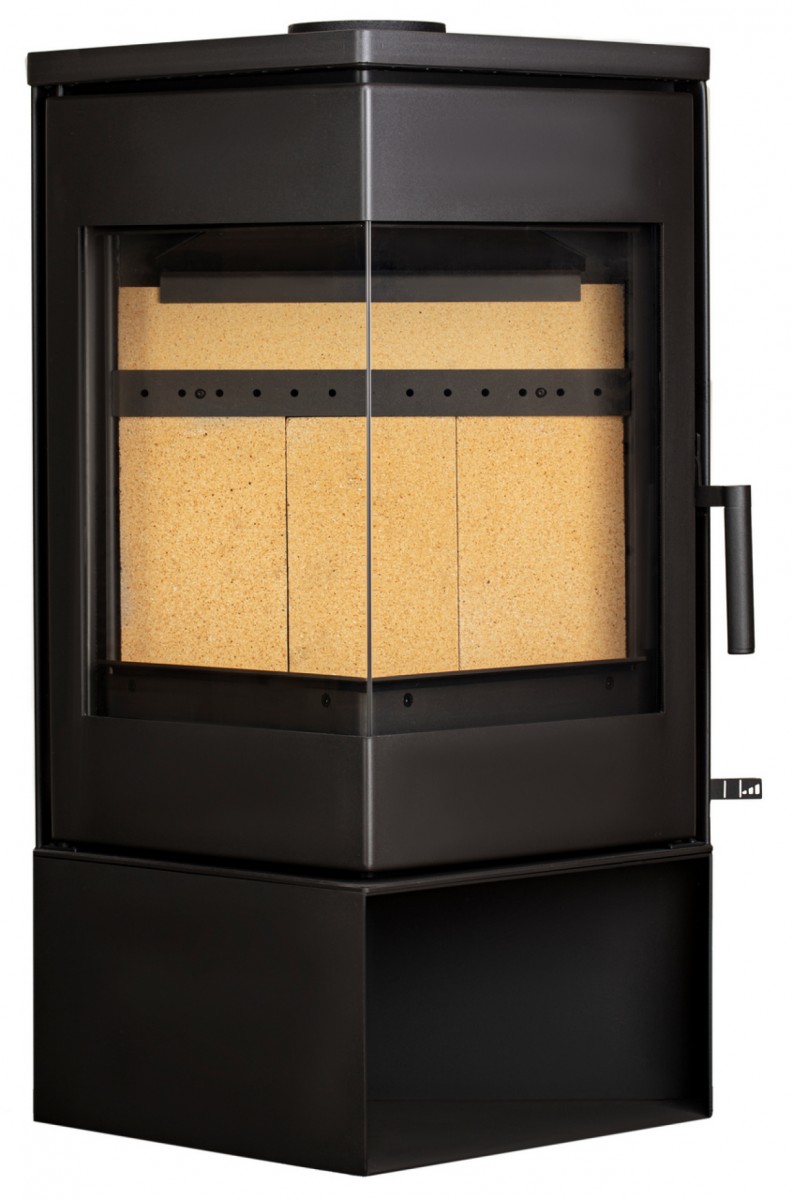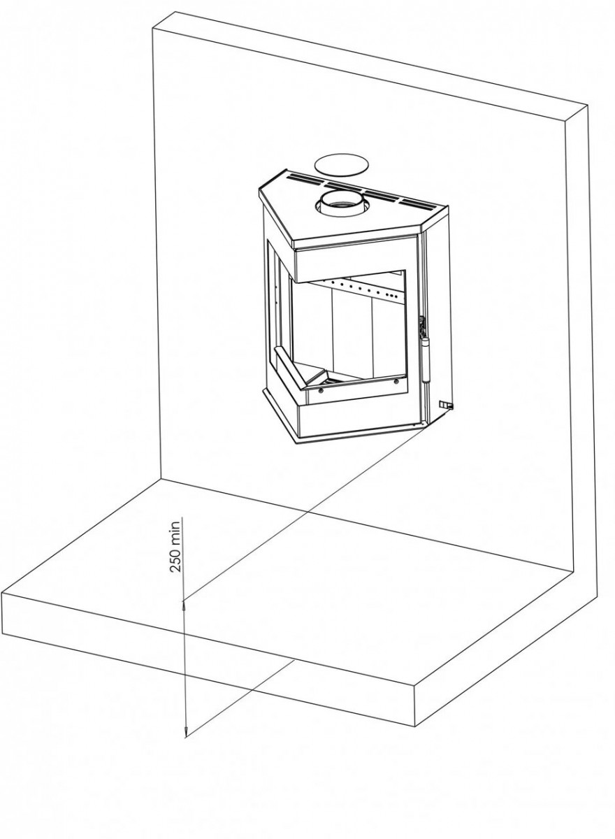 Печь-камин оснащена всеми современными характеристиками: система воздушной очистки стекла, система вторичного дожига газов, система подачи воздуха из «вне», возможность подключения дымохода сверху либо сзади.