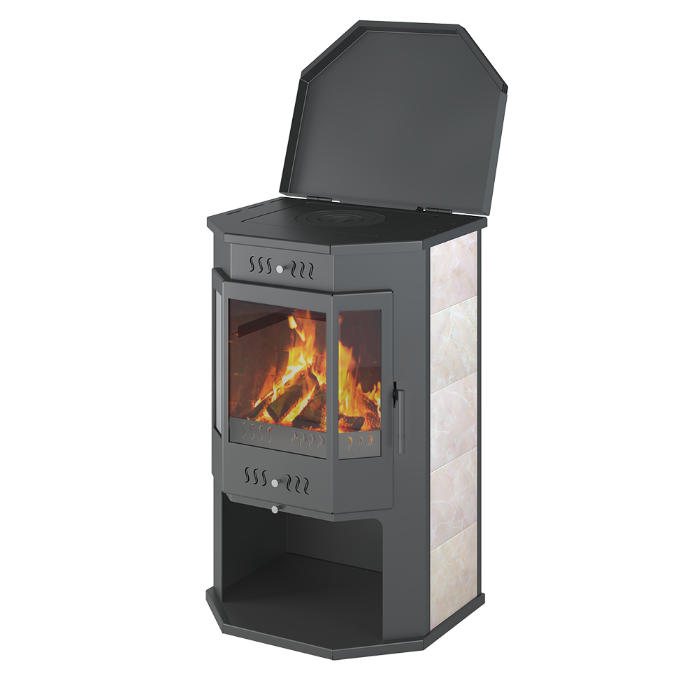 Печь-Камин ASTON 12 кВт (200 м3) Призматик с плитой для отопления дома