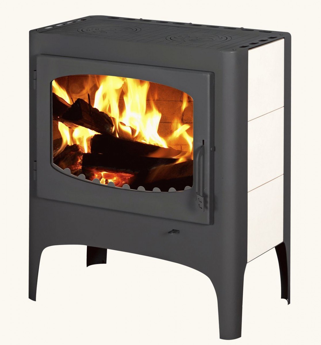 Печь-камин Бавария Эко с плитой 2 конфорки с чугунной плитой и цельносварной топочной камерой