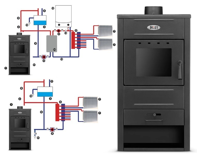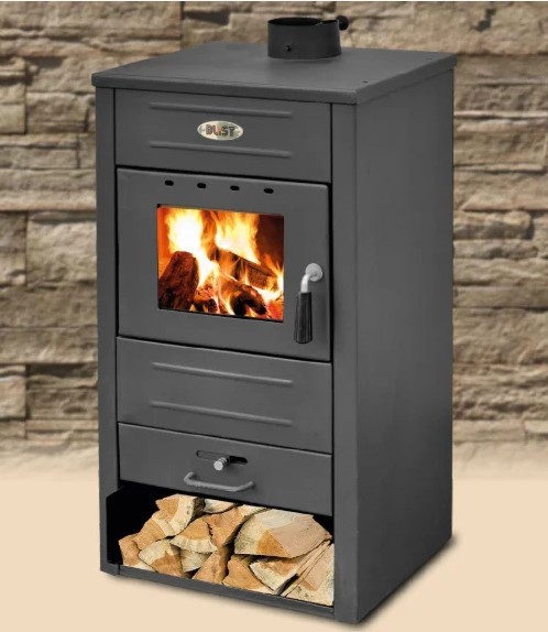 Печь-камин Blist B2 E с водяным контуром 16 л, стальная дверь, для помещения до 98 м2, дымоход 120 мм, гарантия 2 года