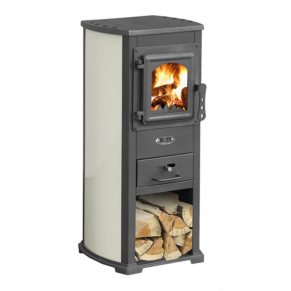 Печь-камин Blist Berna Lux бежевая. Дымоход 118 мм, мощность 5 кВт.