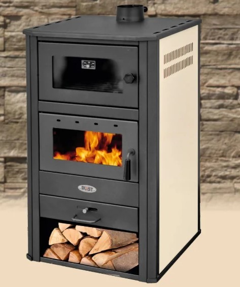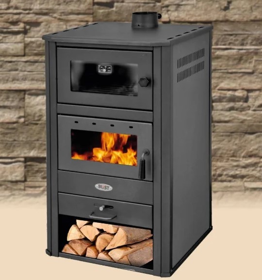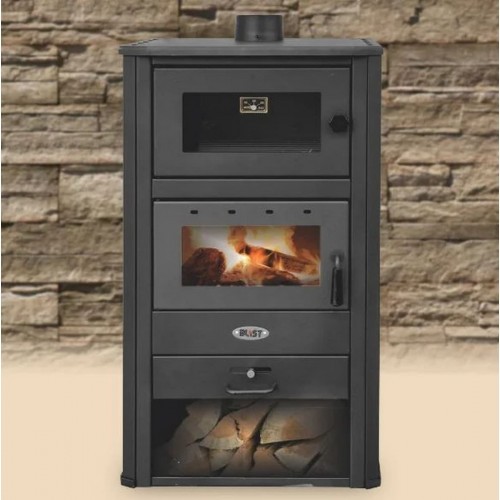 Печь-камин Blist BRM оснащена духовым шкафом для приготовления пищи. Мощность у печи внушительная - 22-24 кВт. Печь оснащена водяным контуром объёмом 26 литров, что выгодно отличает ее от печей-каминов других производителей, которые оснащены небольшим теплообменником объемом 1,2-4л, имеющим мощность около 5 кВт. Такие теплообменники устанавливаются в верхней части топочной камеры, когда в модели BRM E, как и у отопительных котлов, имеется водяная рубашка, окружающая топочную камеру почти со всех сторон. Благодаря этому печь-камин Blist BRM E имеет номинальную мощность водяного контура 16 кВт, а в помещение, в котором она установлена, она отдает 6 кВт мощности. Данные характеристики приближают печь по своему функционалу к отопительным котлам, но, в отличие от котлов, ее можно установить в гостиной и наслаждаться красотой огня. Печь имеет большую топочную камеру, в которую помещаются достаточно большие поленья, а сама камера вместительная и глубокая, благодаря чему можно сделать большую закладку дров и увеличить время горения печи. Также в печи имеется встроенная шиберная заслонка на дымоходе. Зольный ящик у печи очень глубокий, благодаря чему пепел придется выбрасывать реже. Печь имеет европейский сертификат CE.