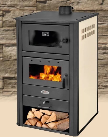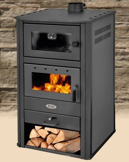 Печь-камин Blist BRM оснащена духовым шкафом для приготовления пищи. Печь изготовлена из стали, а топочная камера выложена шамотом. Диапазон мощности печи 12 - 14 кВт. Зольный ящик у печи очень глубокий, благодаря чему пепел придется выбрасывать реже. Печь имеет большую топочную камеру, в которую помещаются достаточно большие поленья, а сама камера вместительная и глубокая, благодаря чему можно сделать большую закладку дров и увеличить время горения печи. Печь оснащена встроенной шиберной заслонкой на дымоходе. Шамот в топочной камере не только защищает корпус печи от прогорания, но и способствует увеличению КПД и лучшей очистке стекла от сажи. Шамотный кирпич способствует повышению температуры внутри топочной камеры, а значит более полному сгоранию дров. Печь имеет европейский сертификат CE.
