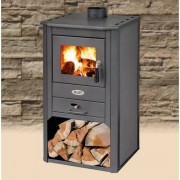 Печь-камин Blist Oganj LM красная горения изготовлена из стали. Топочная камера выложена белым огнеупорным шамотом. Верхняя чугунная панель имеет съемную конфорку и может использоваться для разогрева или приготовления пищи. Мощность данной модели от 8 до 9 кВт. Благодаря большому зольному ящику пепел придется выбрасывать реже. Футеровка топки шамотом способствует защите корпуса от прогорания, лучшей аккумуляции тепла и увеличению КПД. Печь оснащена встроенным шибером – заслонкой дымохода. Герметичность дверце создает термостойкий уплотнительный шнур. Это дает возможность тонко дозировать подачу воздуха в камеру сгорания, тем самым влиять на длительность горения.