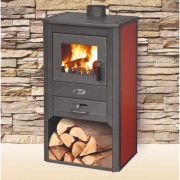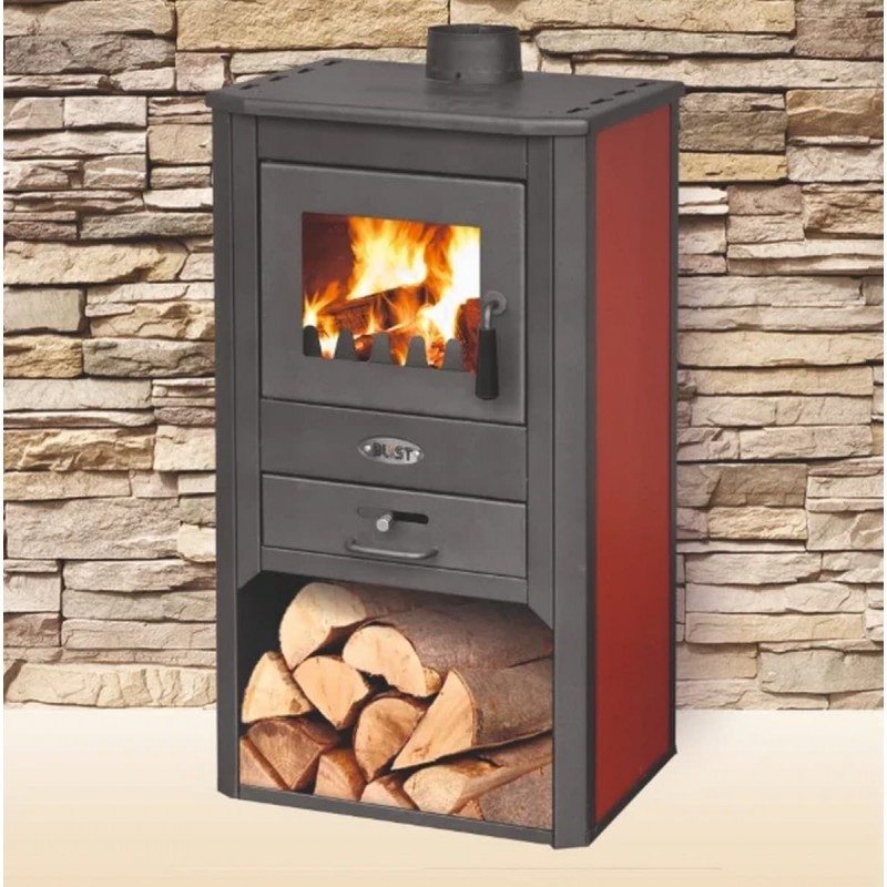 Печь-камин Blist Oganj LM красная, для помещения до 63 м2, дымоход 120 мм, гарантия 2 года