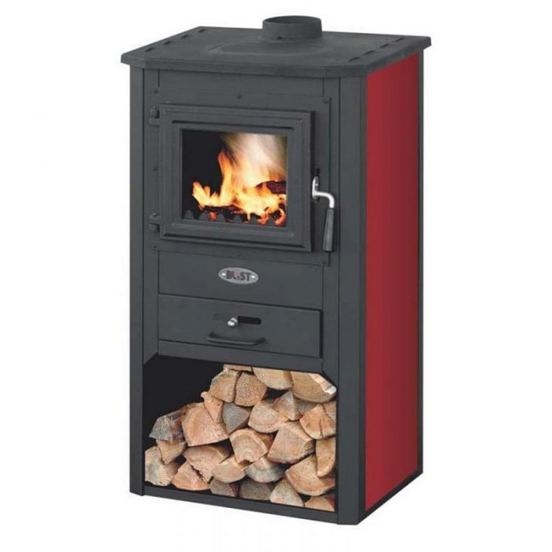 Печь-камин Blist Oganj длительного горения изготовлена со стальной дверцей. Топочная камера выложена белым огнеупорным шамотом. Верхняя чугунная панель имеет съемную конфорку и может использоваться для разогрева или приготовления пищи. Мощность данной модели от 5 до 7 кВт. Благодаря большому зольному ящику пепел придется выбрасывать реже. Футеровка топки шамотом способствует защите корпуса от прогорания, лучшей аккумуляции тепла и увеличению КПД. Печь оснащена встроенным шибером – заслонкой дымохода. Герметичность чугунной дверце создает термостойкий уплотнительный шнур. Это дает возможность тонко дозировать подачу воздуха в камеру сгорания, тем самым влиять на длительность горения. Печь Blist Oganj имеет весьма привлекательный дизайн. Боковые эмалированные вставки печи могут быть окрашены в красный или серый цвет.