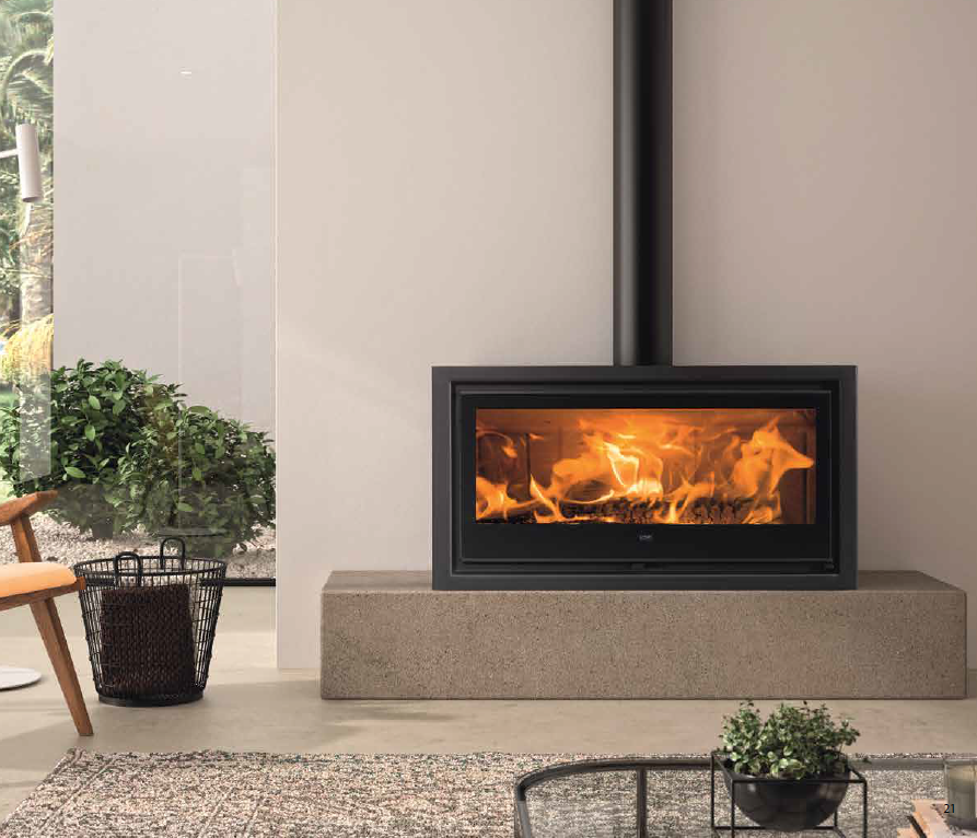 Печь-камин Denia Panoramic, мощность 8,9 кВт, отапливаемый объем 240 м3, длина дров 80 см