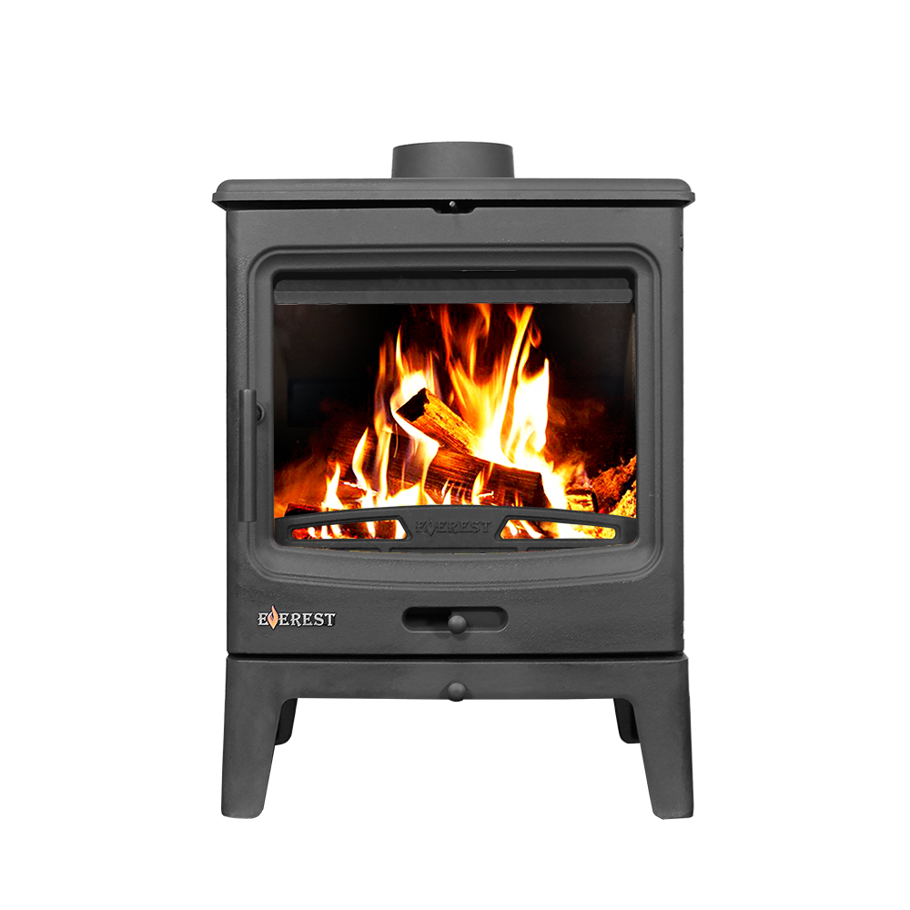 Печь-камин EVEREST Н10 изготовлена из качественного жаростойкого чугуна с толщиной стенок 6-8 мм. Модель рассчитана на обогрев помещений объёмом до 200 м³. Печь-камин имеет два пламегасителя: самый нагруженный пламегаситель изготовлен из вермикулита, второй из жаростойкого чугуна. Топка печи-камина усилена вермикулитовыми плитами с системой вторичного дожига. С помощью этой функции по специальному каналу поступает воздух, который нагревается при прохождении между топочной камерой и задней стенкой корпуса. Далее нагретый воздух через дефлектор поступает в топку, перемешивается с газами - продуктами горения, чем вызывает повторное возгорание. Регулировка этой системы, осуществляется заслонкой, расположенной в нижней части печи-камина. Регулировка подачи воздуха в колосниковую зону осуществляется заслонкой, расположенной на двери. В верхней части расположена ручка регулировки системы чистое стекло, которая помогает оставаться стеклу чистым. Патрубок дымохода Ø 150 мм – универсальный, со сменным положением. Он может быть установлен сверху или сзади в зависимости от размещения печи в помещении.