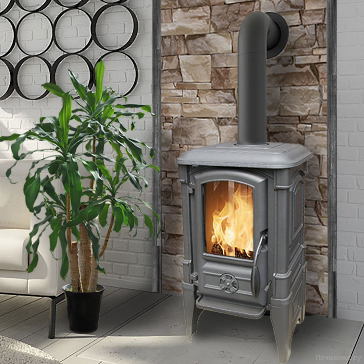 Печь Guca Arina Low - предназначена для обогрева закрытого помещения. Тепло передается через огнеупорное стекло и через литые части печи. Детали печи изготовлены из чугуна, на дверце топки расположено огнеупорное стекло. Печь оборудована первичным и вторичным регуляторами воздуха, которые регулируют количество воздуха необходимого для горения. Первичный регулятор воздуха должен быть полностью открыт на протяжении всего времени розжига (15-20 минут). Во время работы печи, при достижении стабильного режима горения, с целью экономии топлива, первичный регулятор закрывается. Вторичный регулятор позволяет содержать стекло в чистоте и улучшает процесс горения.
