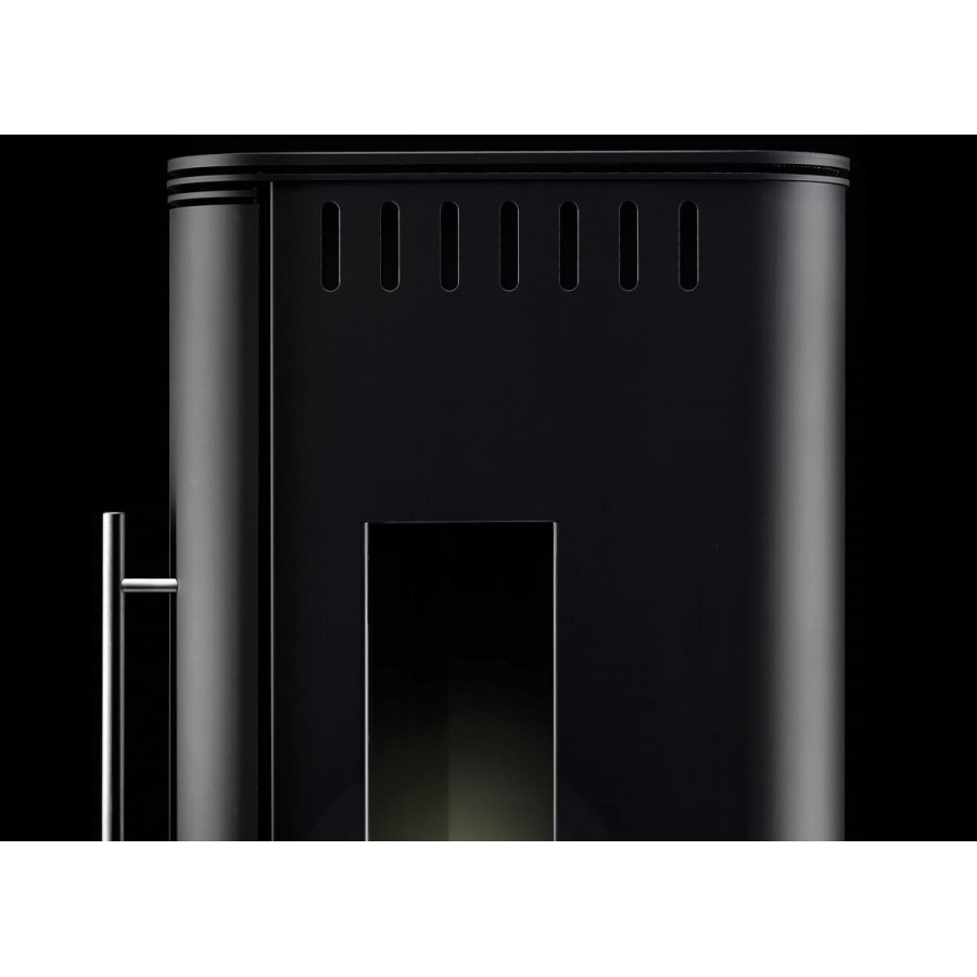 Благодаря своей компактности, эта печь идеально подходит для небольших и уютных комнат. Последовательный и современный дизайн отличается мягкими, но четкими формами и умеет впечатлять мелкими деталями. Ручка из нержавеющей стали, по-видимому, очерчивает тонкую линию рядом с высоким смотровым окном, незаметно выделяющимся на фоне темного стального корпуса. Печь особенно ярко выделяет пылающий огонь в центре внимания. Он предлагает вам лучший вид на огонь в теплых тонах с любого места. Внимание к деталям особенно заметно в двух узких смотровых окнах по бокам, которые придают камину особый шарм.