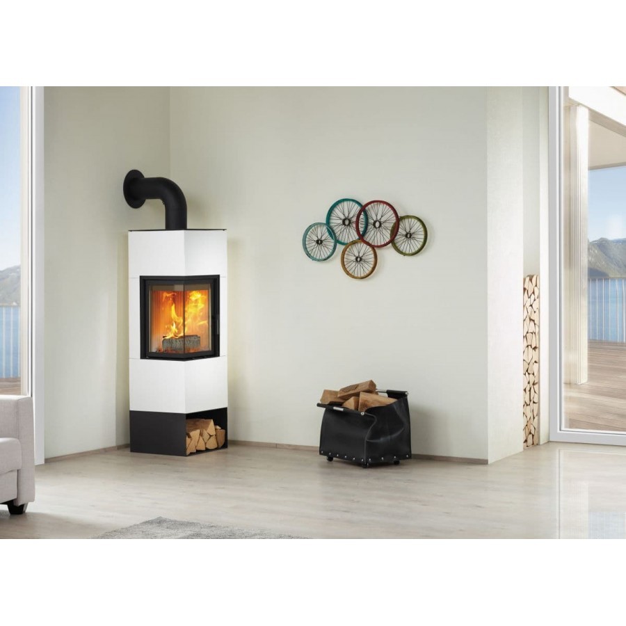 Любители прямых линий и ярких форм быстро полюбят «Пятьдесят». В конечном итоге дизайн демонстрирует «четкую грань». Это также относится к просторному угловому стеклу, через которое вы можете наблюдать танец пламени на бревнах с двух сторон. В отличие от обычных моделей печей, облицовка этой гибридной печи сделана из хакалита. Поскольку духовой шкаф поставляется загрунтованным, вы можете оформить поверхность в соответствии со своими идеями. В зависимости от ваших личных предпочтений вы можете покрасить печь в любой цвет или нанести эффектную штукатурку. У вас также есть дополнительная свобода действий, когда дело доходит до дизайна: печь доступна в различных версиях. В зависимости от ваших пожеланий и потребностей, вы можете расширить камин деревянной кроватью или скамейкой - также возможно сочетание элементов.