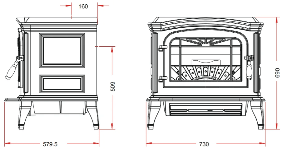 Invicta Bradfofd красная эмаль – чугунная дровяная печь классического дизайна с большим стеклянным окном, что дает возможность наслаждаться огнем во всей его красе