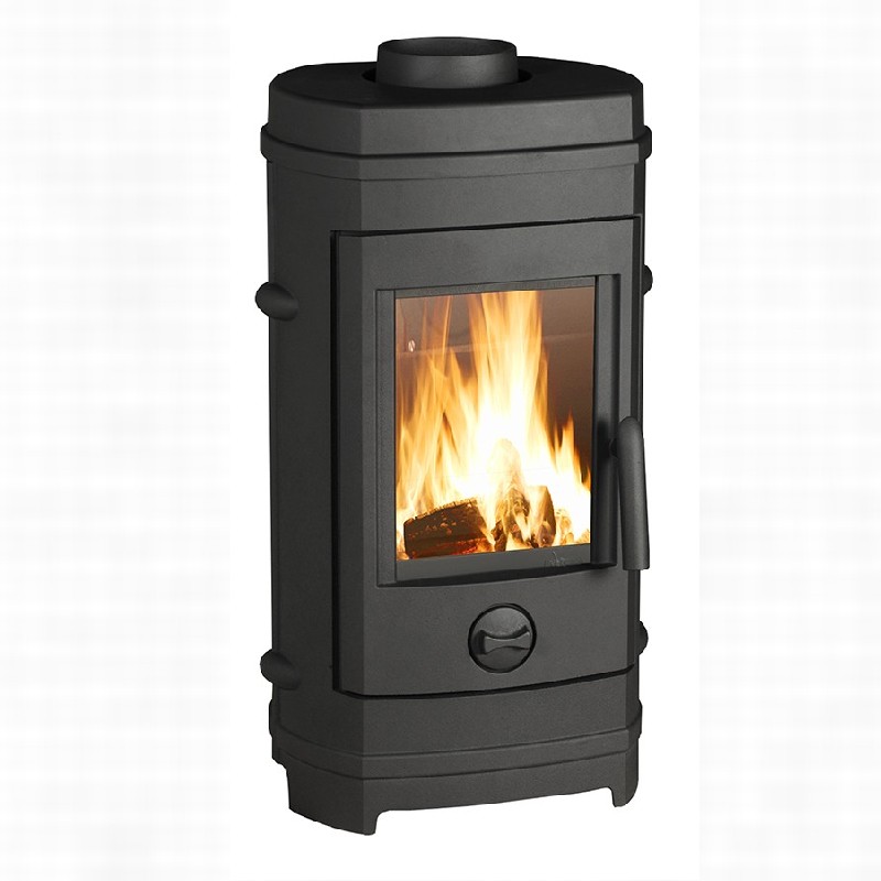 Печь-камин Remilly Invicta – стильное решение для загородного дома, коттеджа или дачи. Это современное оборудование автономного отопления идеально подходит для небольших помещений. Печь изготовлена из прочного чугуна большой толщины. Этот материал отлично нагревает помещение в течение 5-7 минут. За счет толстых стенок печь-камин длительное время остается горячей, что позволяет экономить на топливе. Поверхность корпуса покрыта жаропрочной краской цвета «антрацит». Это позволяет выглядеть камину эстетичным и более стильным. Краска не трескается и не деформируется на протяжении всего срока эксплуатации. По эксплуатации Remilly Invicta напоминает буржуйку. Однако, она в несколько десятков раз лучше удерживает тепло. В качестве топлива можно использовать дрова или брикеты из торфа и опилок. Корпус литой, это позволяет повысить КПД печи до 78%. Удобная ручка-защелка не нагревается во время горения, и герметично закрывает дверь. Выдвижной зольный ящик выделяется своим большим объёмом. Его можно легко почистить даже во время эксплуатации печи. Дверь изготовлена из жаропрочной стеклокерамики, которая способна выдержать температуру до 750 градусов. Система «чистое стекло» очищает дверцу от золы и других загрязнений изнутри.