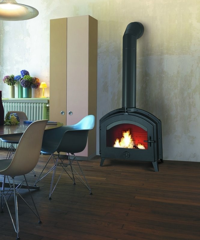 Invicta Stimo – чугунная дровяная печь современного дизайна. Печь выполнена из чугуна, что гарантирует ей надежную эксплуатацию и долгий срок службы. Печь имеет fhjxye. форму и предполагает пристенную установку, для которой не требуется сооружение дополнительного фундамента. Широкий угол стекла усиливает завораживающий вид пламени. Печь-камин оборудована системой очистки стекла и вторичным дожигом дымовых газов.