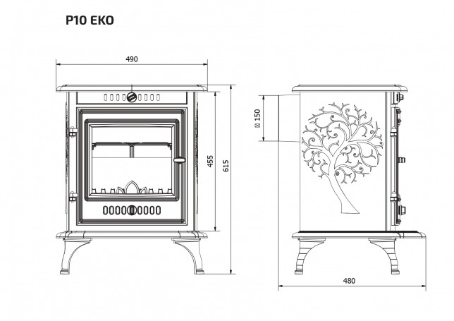 | Диаметр дымохода | 150 мм |