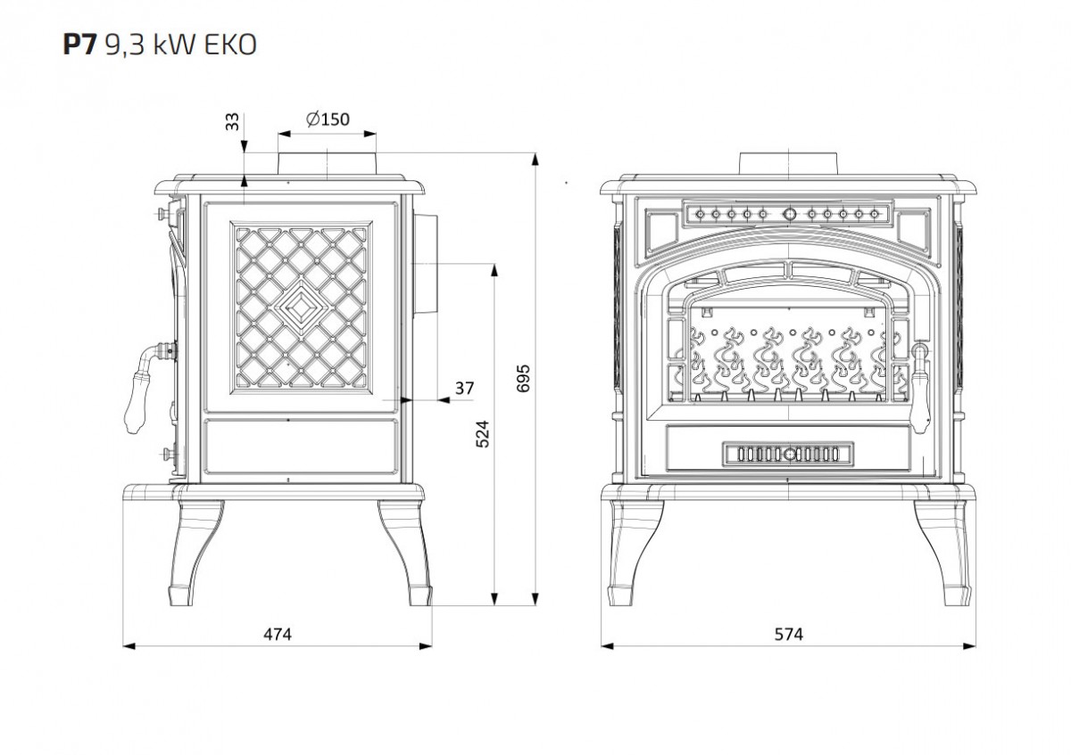 Чугунная печь KAWMET P7 - 9,3 кВт ECO с отличным дизайном и великолепной ценой, используется для отопления помещений, а также как предмет интерьера. Выполнена из чугуна класса EN-GJL- 200 под давлением с гладкими стенками без пор и обработки. Глубина топки под закладку дров 21 см, максимальная ширина топки 36 см, длина используемых дров до 36 см. Чугунная печь KAWMET P7 - 9,3 кВт ECO выгодно отличается более точной регулировкой подачи воздуха через нижнюю часть дверцы под колосниковую решетку. Открыв ее на максимум, вы подаете к дровам оптимальное количество воздуха для быстрого розжига. Во вторых регулируемая подача воздуха на стекло, подавая воздух на внутреннюю сторону стекла, вы тем самым создаете направленный поток, который будет препятствовать оседанию сажи, стекло значительно дольше будет оставаться чистым, что бы вы наслаждались игрой живого укрощенного огня.