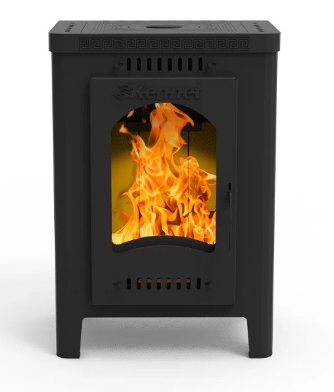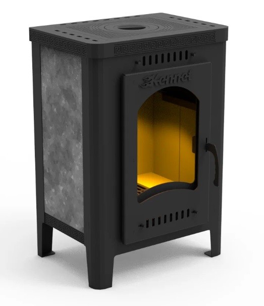 Печь-камин Kennet Гермес с плитой, мощность 7 кВт, материал корпуса - сталь/керамика, отапливаемая площадь 145 м3, вес 107 кг