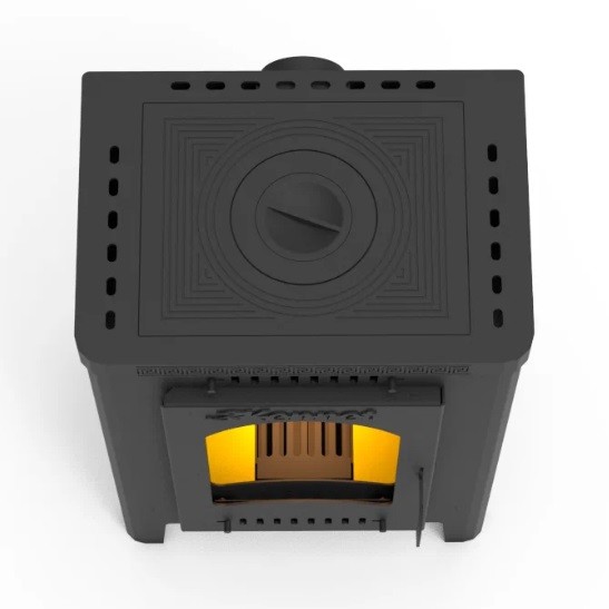 Печь-камин предназначена для установки в помещениях в целях создания необходимого температурного режима. Топка печи изготовлена из конструкционной стали, футерована легкозаменяемым высококачественным шамотом. Наличие чугунной варочной поверхности позволяет приготовить или разогреть пищу. Печь-камин может работать в двух режимах: экономичный – тление дров, интенсивный – в основном используют при растопке и при приготовлении пищи.