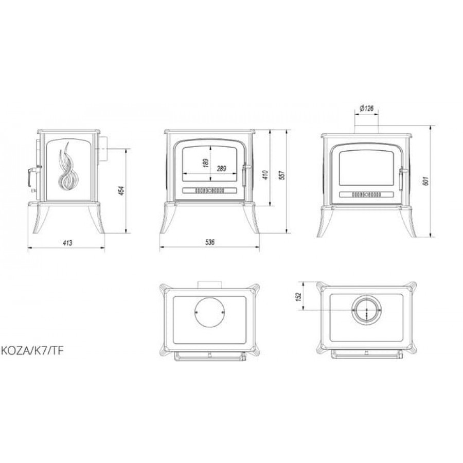 Печь-камин Kratki Koza K7 из чугуна с турбинным феном мощностью 5 кВт это отопительная прибор эконом-класса, предназначен для отопления жилых помещений (дома, дачи и др.) площадью до 215 куб. м. Модель камина работает на дровах и топливных брикетах, устанавливается внутри помещении с подключением дымохода с длительностью горения одной закладки дров до 5 часов.