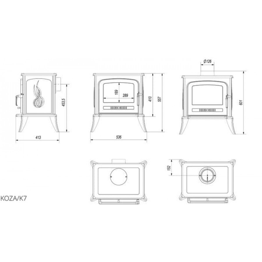 Печь-камин Kratki Koza K7 из чугуна мощностью 5 кВт это отопительная прибор эконом-класса, предназначен для отопления жилых помещений (дома, дачи и др.) площадью до 215 куб. м. Модель камина работает на дровах и топливных брикетах, устанавливается внутри помещении с подключением дымохода с длительностью горения одной закладки дров до 5 часов.