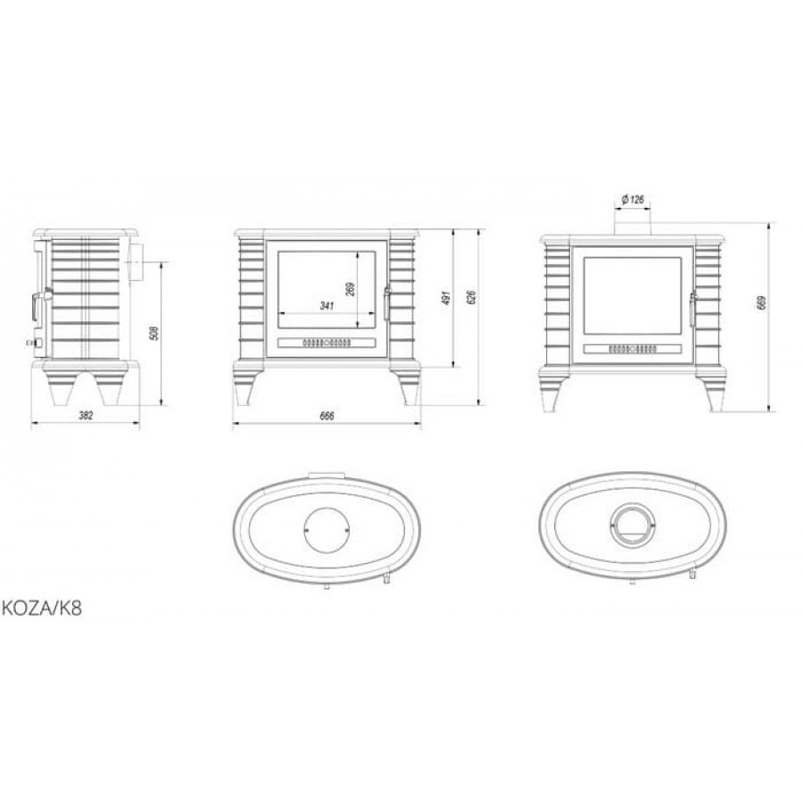 Печь-камин Kratki Koza K8 из чугуна мощностью 9 кВт это отопительная прибор эконом-класса, предназначен для отопления жилых помещений (дома, дачи и др.) площадью до 300 куб. м. Модель камина работает на дровах и топливных брикетах, устанавливается внутри помещении с подключением дымохода с длительностью горения одной закладки дров до 5 часов.