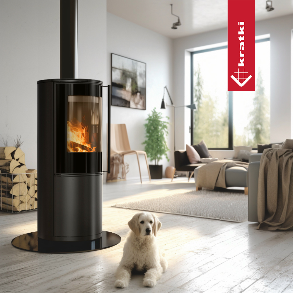 Печь-камин для отопления дома Kratki SVEN Ø150 7кВт черный с обшивкой thermotec.