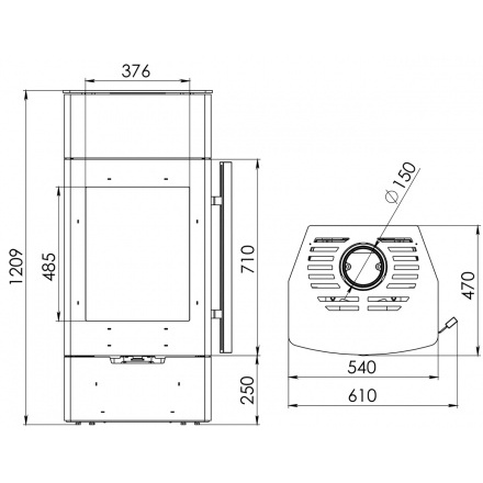 | Диаметр дымохода | 150 |
