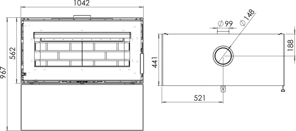 Современная, стильная и мощная печь-камин Монблан предлагает роскошную цельностеклянную переднюю часть и широкое остекление для еще большего удовольствия от огня. Масштабное панорамное стекло размером 1000*520 мм. оформлено черным принтом по периметру. Топка легко вмещает дрова длиной до 800 мм. Ниша под топкой может служить удобным дровником. Дверь снабжена самозакрывающейся системой двойного замка для идеальной герметичности, а дверная ручка является съемной.