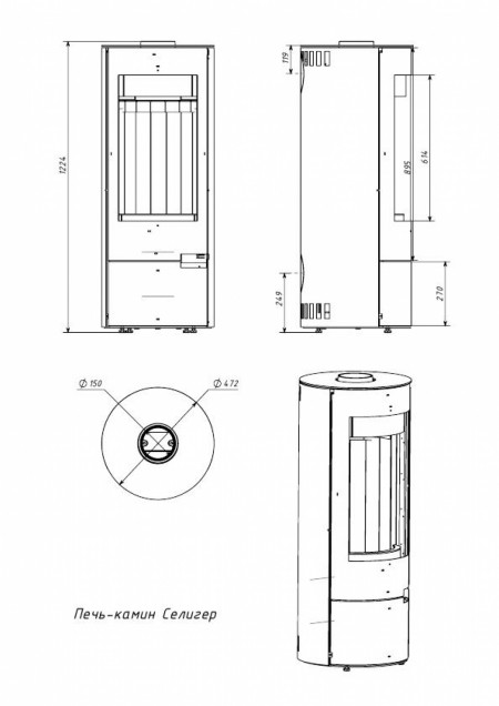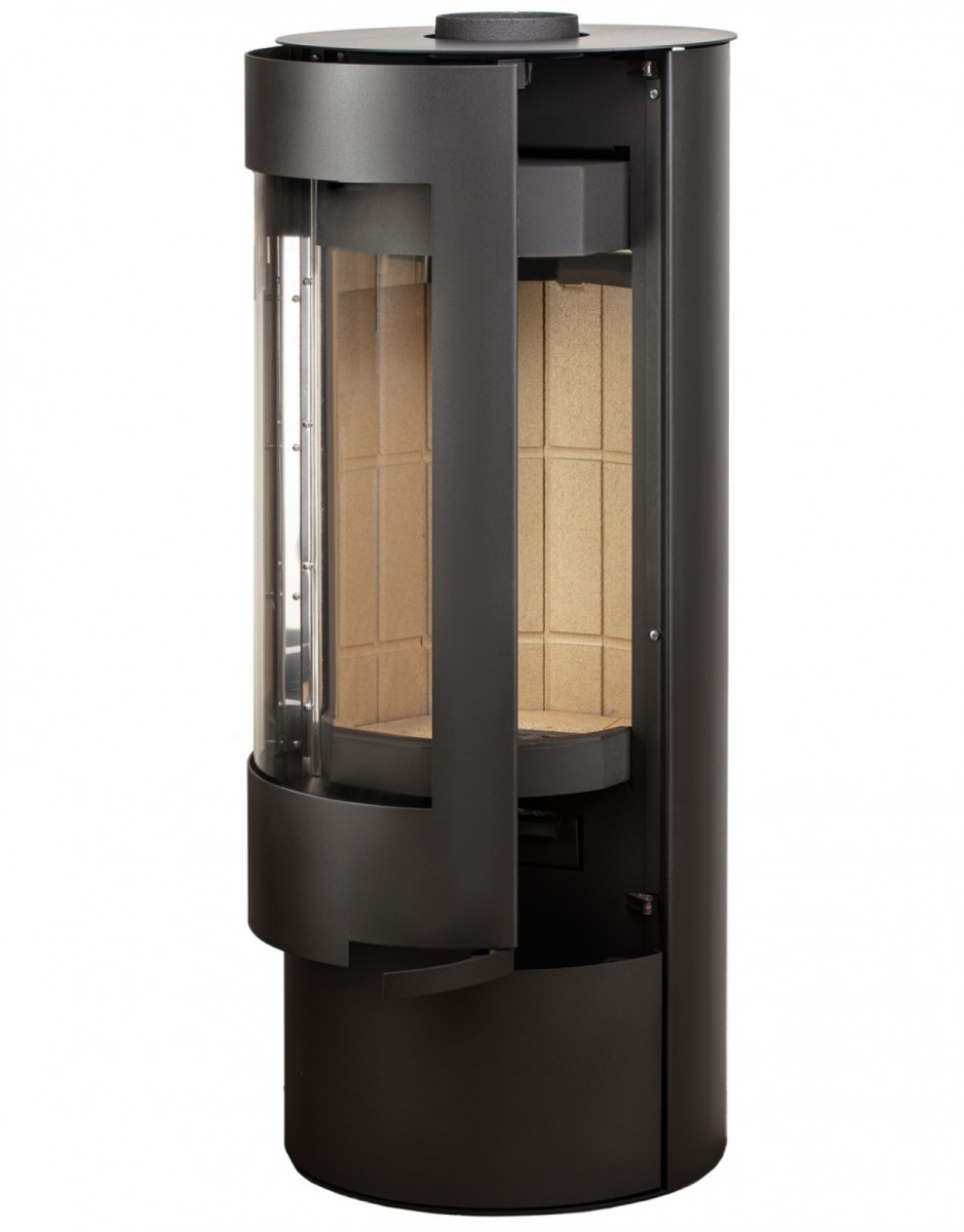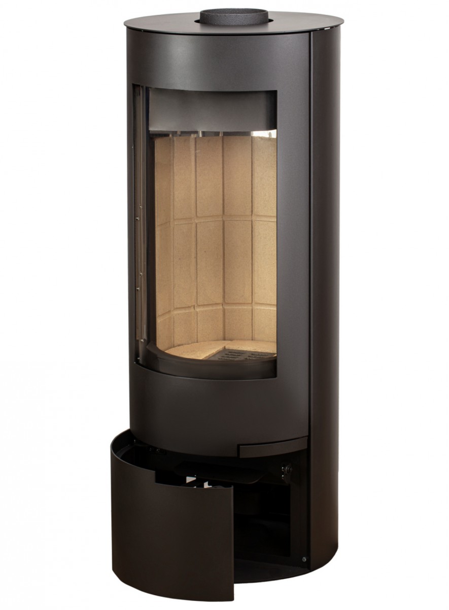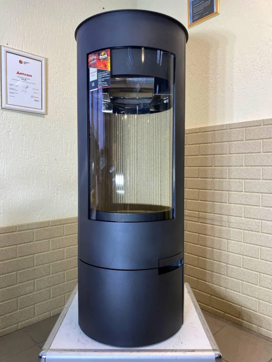 Высокая и полностью круглая в основании печь стала образцом единства технологии и дизайна. Нет места компромиссам, если горение, то чистое и высокоэффективное, если экстерьер, то по лучшим канонам европейского печестроения. Высокая панорамная топка и отлаженная система подачи воздуха позволяет любоваться за укрощенной огненной стихией с минимальным количеством потребляемого топлива! Замысловатый нержавеющий купол в верхней части топки собирает все тепло и отдает в помещение. Селигер может сэкономить кислород в помещении, если для горения использовать воздух с улицы или подвала. Ничего лишнего на фасаде печи вы не найдете, все строго и лаконично, органы управления и обслуживания спрятаны за специальной дверкой внизу печи-камина. На печи вообще нет выступающих частей, стекло и металл находятся в одной плоскости. Если подключить печь к дымоходу с тыльной части, можно представить что прибор работает автономно и сам собой генерирует безупречное пламя.