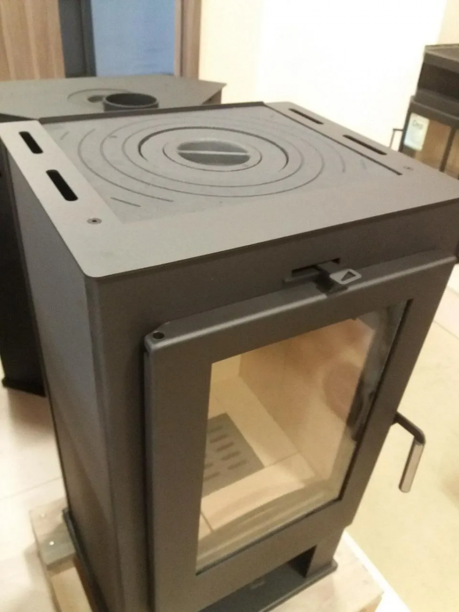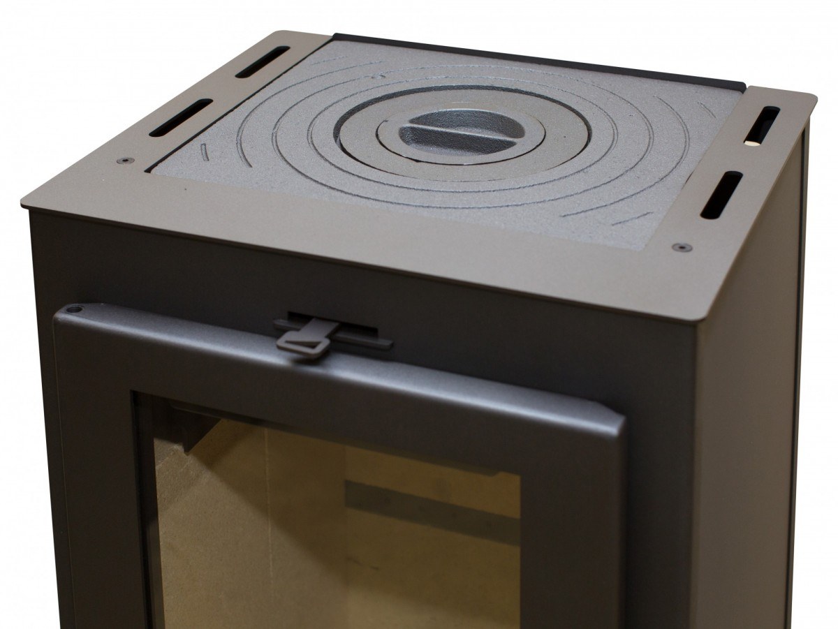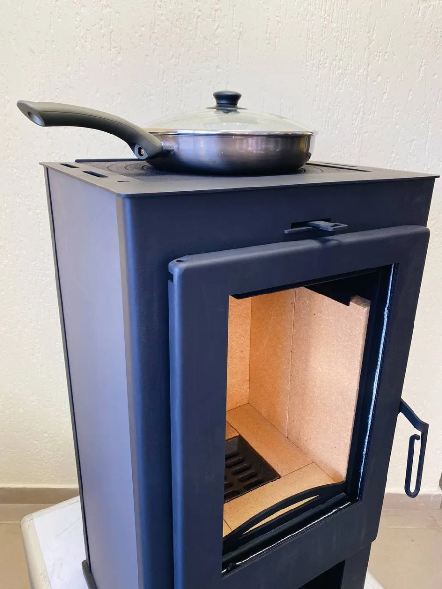 Топка выполнена из прочной стали, обеспечивая долгий срок службы устройства. Дверца с огнеупорным стеклом не только обеспечивает безопасность, но и придает печи стильный внешний вид, а также позволяет наслаждаться красивым зрелищем пламени.