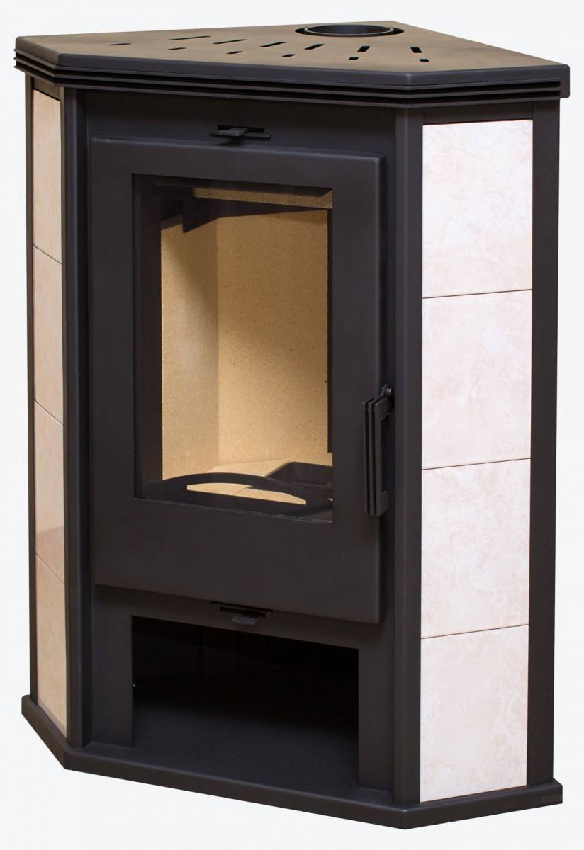 Печь-камин Мета-Бел АОТ 7.0 (в модификации "Ритм L") – компактная угловая печь с диаметром дымоходного патрубка 115 мм. Печь оснащена системой «регулируемого вторичного дожига». Дополнительная конвекция предусмотрена на верхней крышке печи. Идеально подходит для обогрева небольшого загородного домика площадью 30-70 м2. Размер поленьев 25-27 см. Подсоединение к дымоходу сверху.