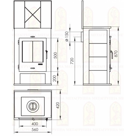 Отопительная печь-камин Мета-Бел АОТК 8.0 (в модификации "Охта") для обогрева помещения объёмом 200 м3