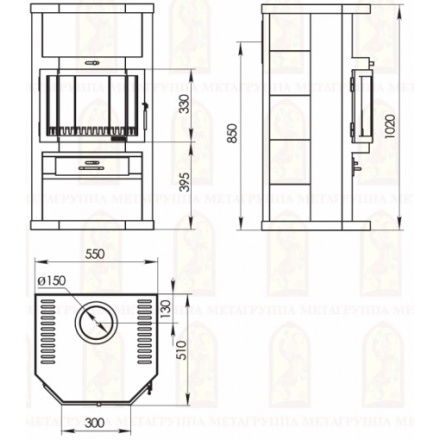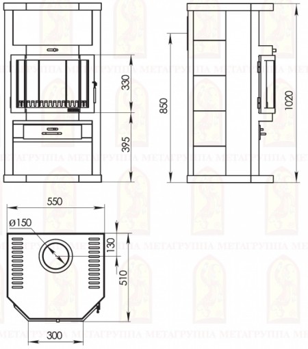Отопительная печь-камин Мета-Бел АОТ 9.0-02 (в модификации "Ангара") для обогрева помещения объёмом 135 м3