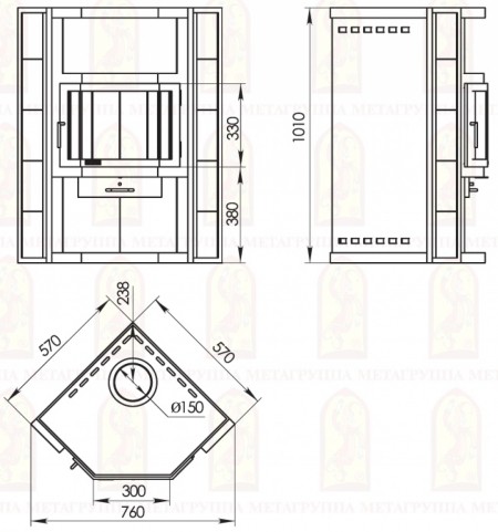 Отопительная печь-камин Мета-Бел АОТ 9.0-04 (в модификации "Амур") для обогрева помещения объёмом 135 м3