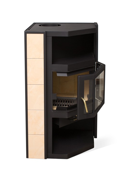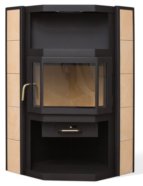 Печь-камин Мета-Бел АОТ 9.0-04 (в модификации "Амур") – классическая угловая печь с панорамным обзором. Идеально подходит для обогрева помещения площадью 45-90 м2. Призматическая дверка из трех стекол высотой 330 мм. В отделке боковых поверхностей используется керамическая плитка. Размер поленьев 30-60 см. Подсоединение к дымоходу сверху.