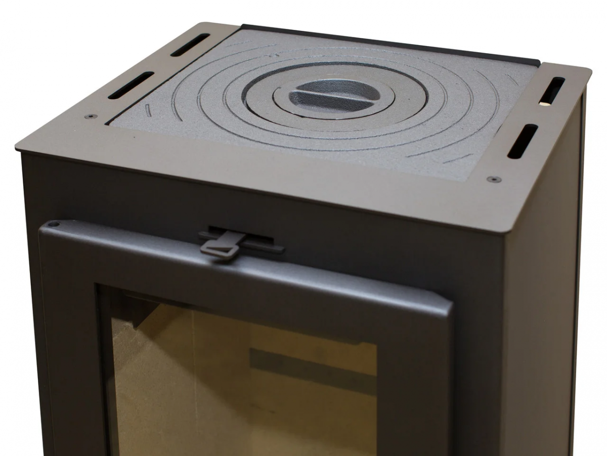 Новая модель печи-камина Нарва 7М в отличии от предыдущей модели получила бОльшую площадь остекления двери и чугунную варочную поверхность со съемными кольцами, а также систему вторичного дожига, подвод воздуха для горения извне, а также окраску дорогой немецкой краской. Также в новой модели печи изменена конструкция ручки.