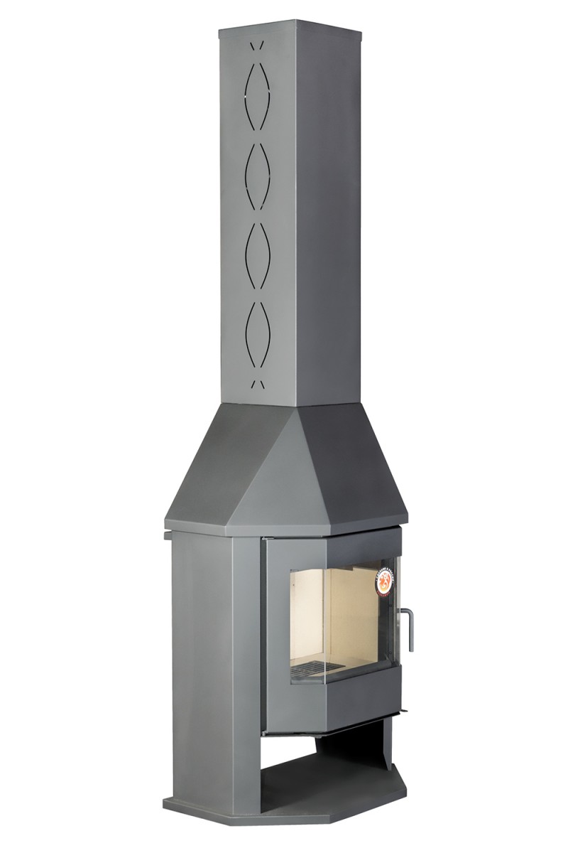 Печь-камин Мюнхен Гигант графит, мощность 12 кВт, диаметр дымохода 200 мм, вид горения: колосниковое, гарантия 2 года