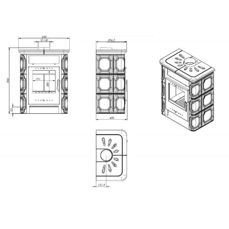 Печь-камин NORDflam Arta для помещения до 60 м2, КПД 80%, дымоход 150 мм, гарантия 2 года