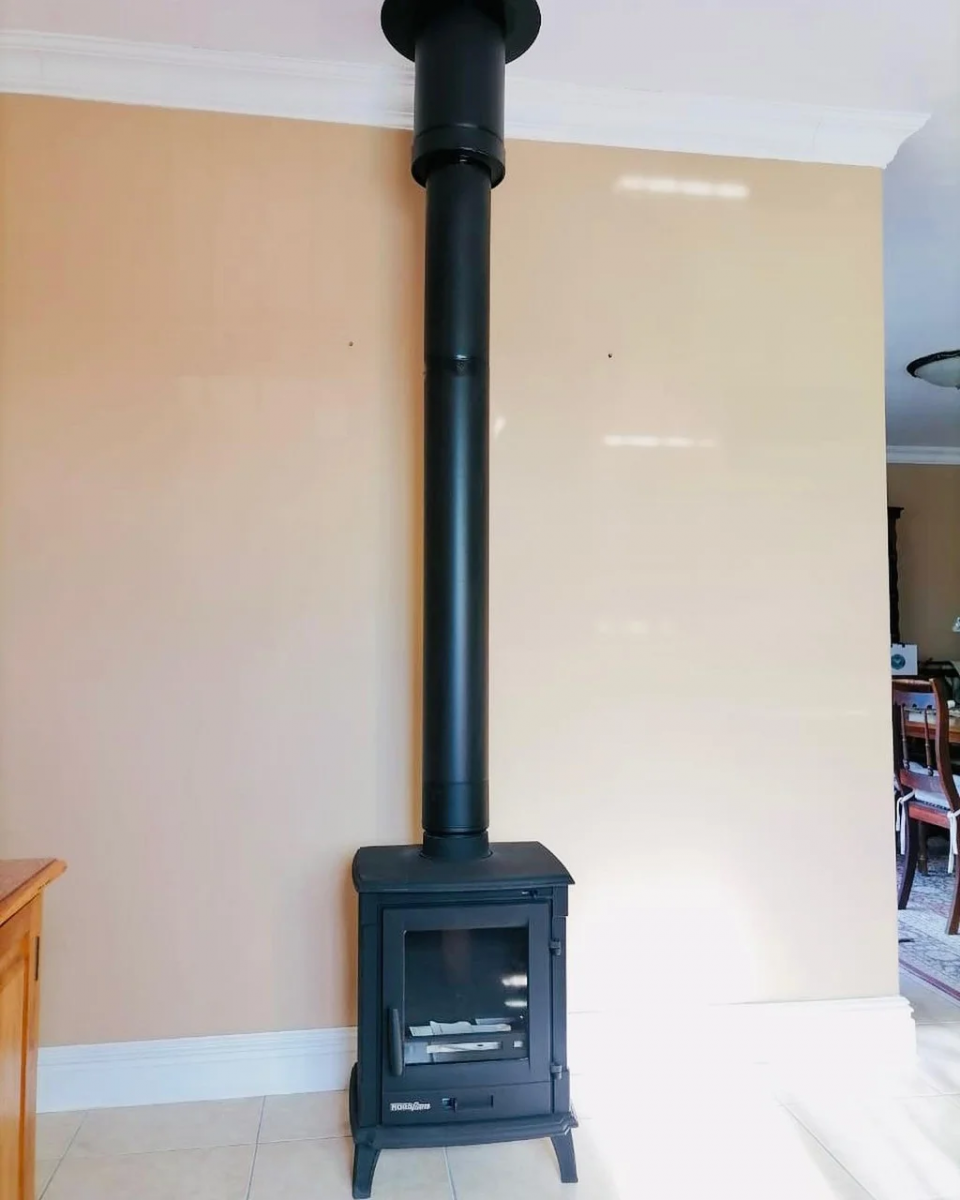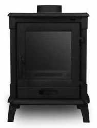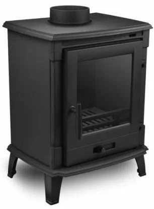 Отдельностоящая модель оборудована бортиком для дров, который предохраняет их от выпадения из топки. Дверцы печи имеют боковое открытие с помощью удобной ручки. Также дверцы с термостойким стеклом, которое выдерживает температуру до 700 °С. Модель с системой притока воздуха на внутреннюю поверхность стекла, что препятствует осаждению сажи и копоти на него.