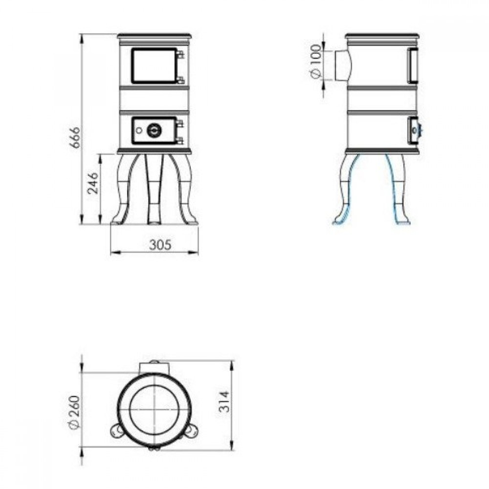 | Диаметр дымохода | 100 |
