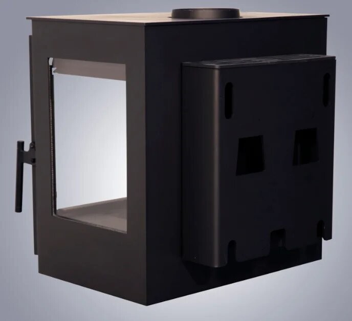 Отзывчивость на регулировки и способность хорошо гореть при минимальной подаче воздуха достигается за счет футеровки топочной камеры вермикулитом, а также правильно спроектированной подачи воздуха. Воздух в печь попадает через отверстие, расположенное в нижней части корпуса. Далее воздух проходит внутри канала по задней стенке печи и частично попадает в топочную камеру через отверстия вторичного дожига. Далее воздух проходит внутри канала, расположенного в верхней части печи, где максимально прогревается, и только потом сильно разогретый воздух попадает на стекло. Благодаря такому сложному каналу подачи воздуха топочная камера очень хорошо прогревается и сажа не оседает на стекле, происходит более полное сжигание топлива. Именно поэтому нет необходимости делать огромные закладки дров для прогрева топочной камеры.