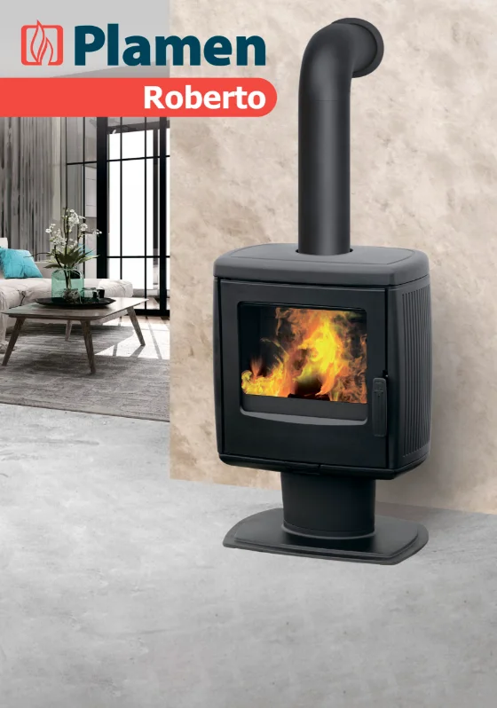 Печь Plamen Roberto - новинка 2023 года. Ее отличительная особенность - компактные размеры, большое обзорное стекло и наличии подключения внешнего воздуха.