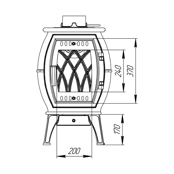 Чугунная дверка декорирована чугунной клеткой, что придает камину нестандартный дизайн и прочность. Во всех печах производства ProMetall стоит стекло NEOCERAM толщиной 4 мм. Особенность его в двухсторонней полировке, что гарантирует кристально чистый вид на огонь. NEOCERAM - это не просто стекло, а огнестойкая стеклокерамика, которая не имеет аналогов. Размер экрана 200х235.