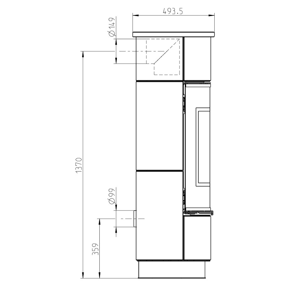 Внутренние системы печи оснащены передовыми технологиями для качественного отопления. Например, в печи предусмотрена трехуровневая подача воздуха. Первичная и вторичная подача воздуха доступны для регулировки процессов горения, а третий канал подачи кислорода обеспечивает оптимальное горение огня. Возможно как заднее, так и верхнее подключение дымохода, а также подача воздуха на горение из соседних помещений или с улицы.