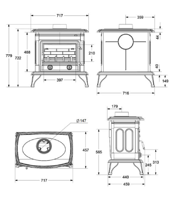 | Диаметр дымохода | 150 мм |