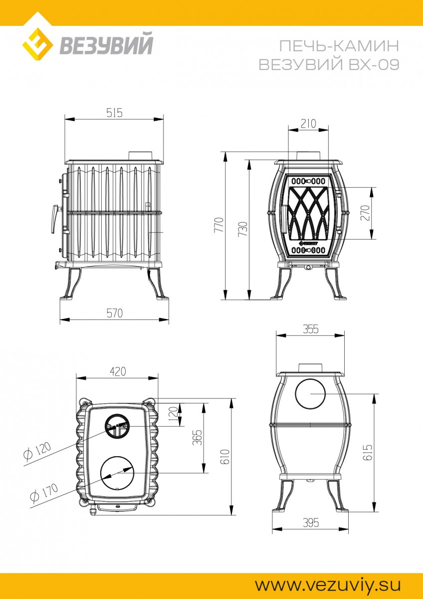 Печь-камин Везувий BX-09 Антрацит для обогрева хозяйственных и бытовых помещений.