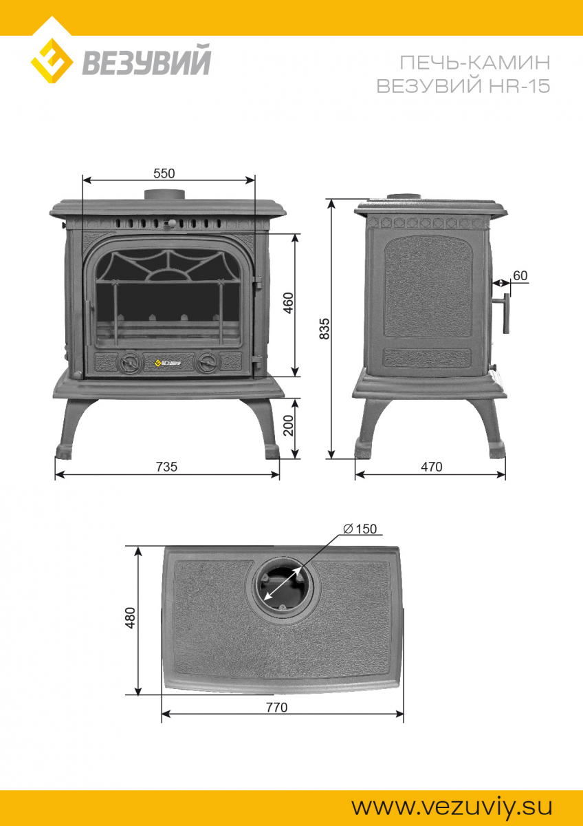 Печь-камин Везувий HR-15 Антрацит для обогрева хозяйственных и бытовых помещений.
