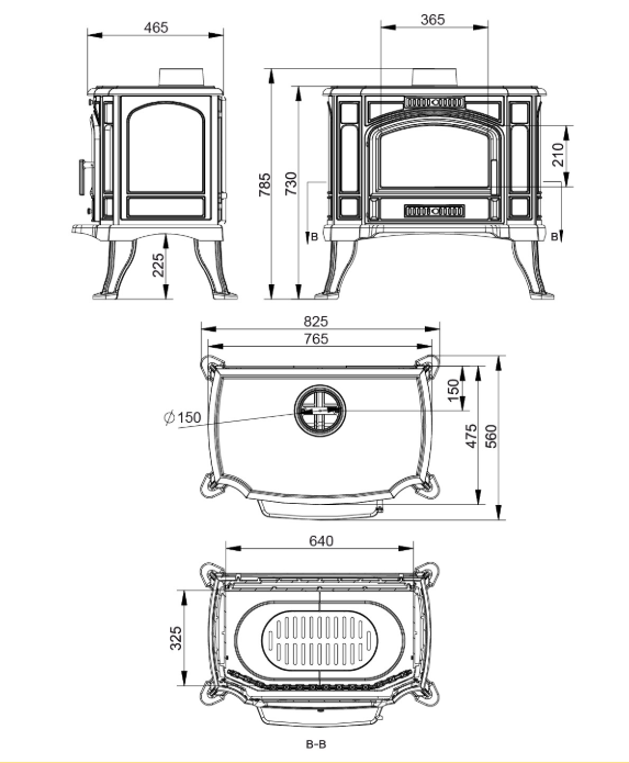 | Диаметр дымохода | 150 мм |