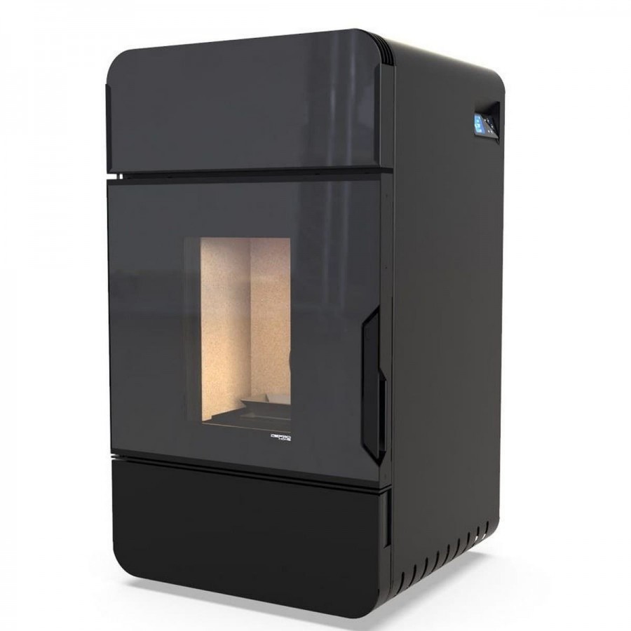 Печь прекрасно выглядит в современном интерьере и имеет отличную продуктивность. Печь имеет встроенный контейнер и удобное управление. Устройство оборудовано сенсорной панелью, на которой установлен режим работы. Контроллер имеет интуитивное меню, поэтому управление устройством очень простое.