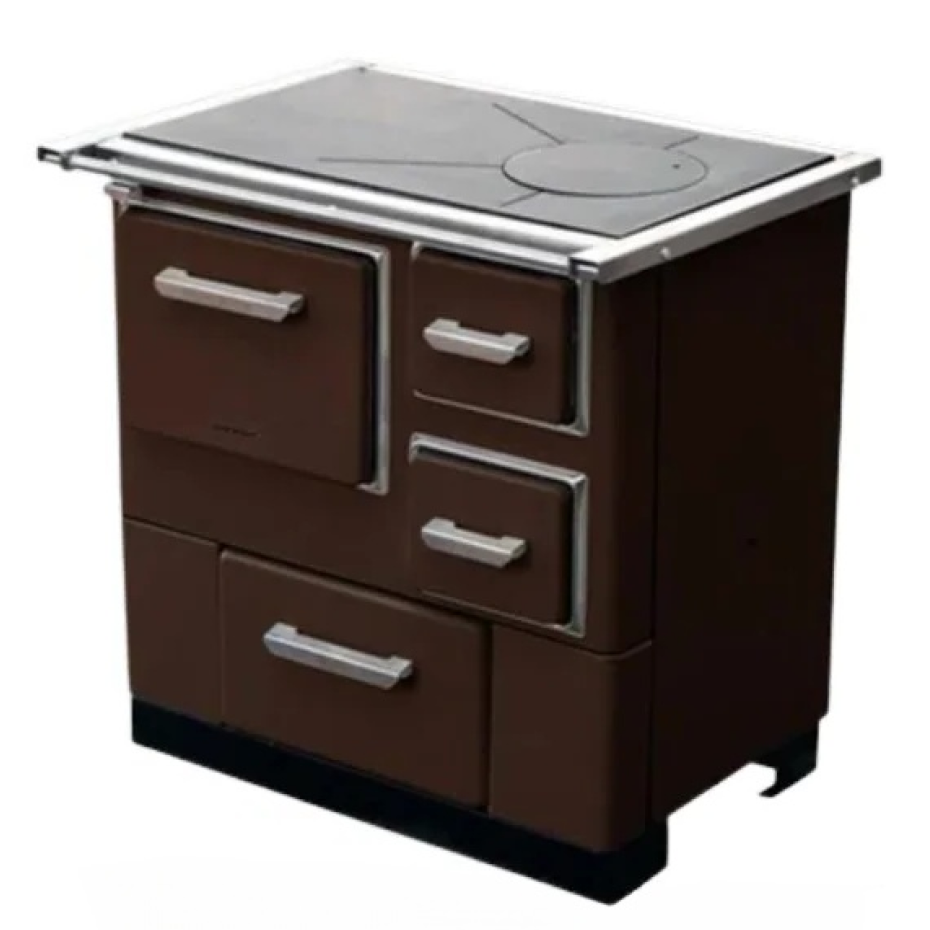 Плита на дровах предназначена для отопления помещения и приготовления пищи на варочной поверхности и в духовом шкафу. Кухонная дровяная печь Smederevac изготовлена из эмалированной стали, верхняя плита из толстого стального листа, а топочная камера выложена огнеупорным шамотом. Печь может отопить до 30 - 40 м2 в зависимости от качества утепления здания.